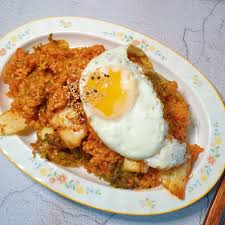 - 양념장을 넣고 계란프라이를 올립니다.
