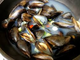 물이 끓으면 홍합을 넣습니다.